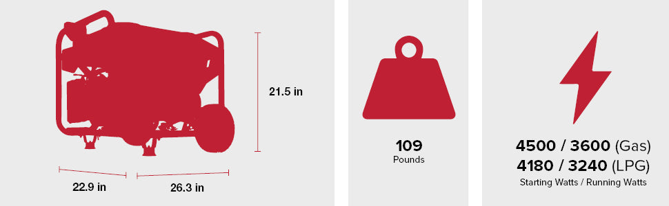 Generac/Powermate PM4500DF 3600W/4500W Recoil Start Dual Fuel Portable Generator with CO-Sense New