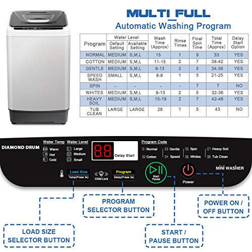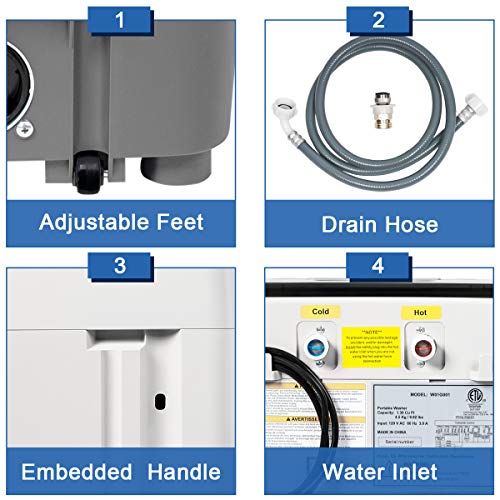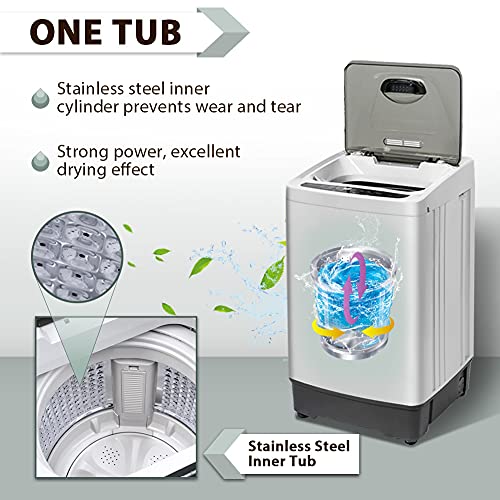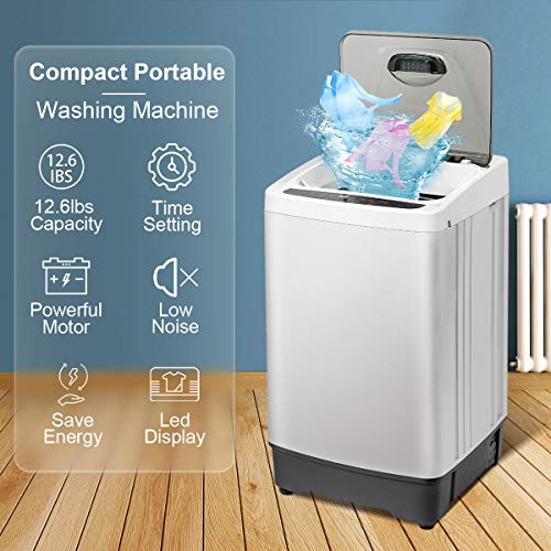 Portable Washing Machine, 12.6 lbs Full Automatic Washer and Dryer Combo, Small Compact Laundry Clothes Washer with Drain Pump, Wheels, LED Display for Apartment, Camping, Rv, Sink