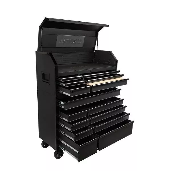 52 in. W x 21.5 in. D 15-Drawer Black Mobile Workbench