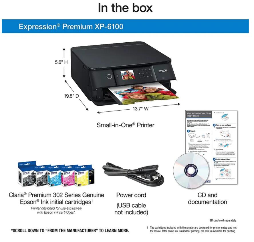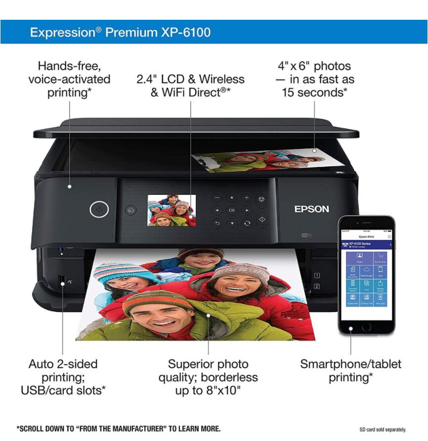 Epson Expression Premium XP-6100 Wireless Color Photo Printer with Scanner and Copier, Black