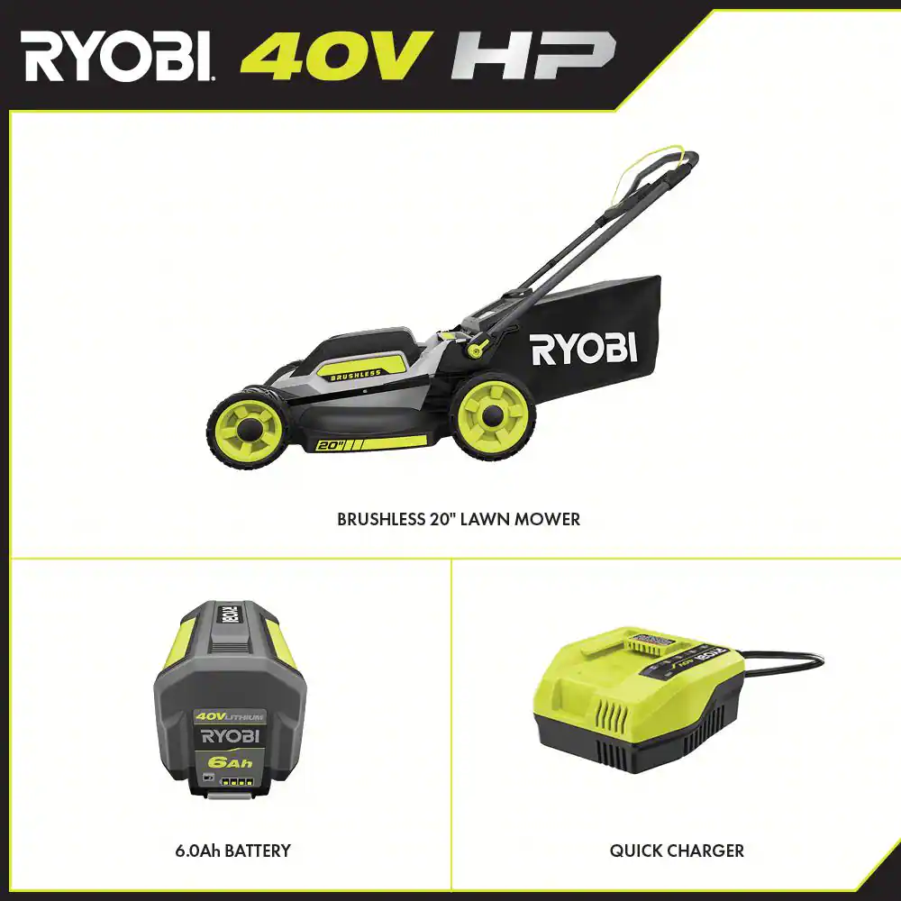 Ryobi 40V HP Brushless 20 in. Cordless Battery Walk Behind Push Mower with 6.0 Ah Battery and Charger