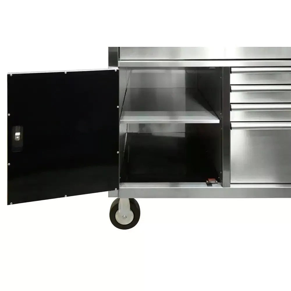 52 in. W 5-Drawer 1-Door, Deep Tool Chest Mobile Workbench in Stainless Steel with Hardwood Top