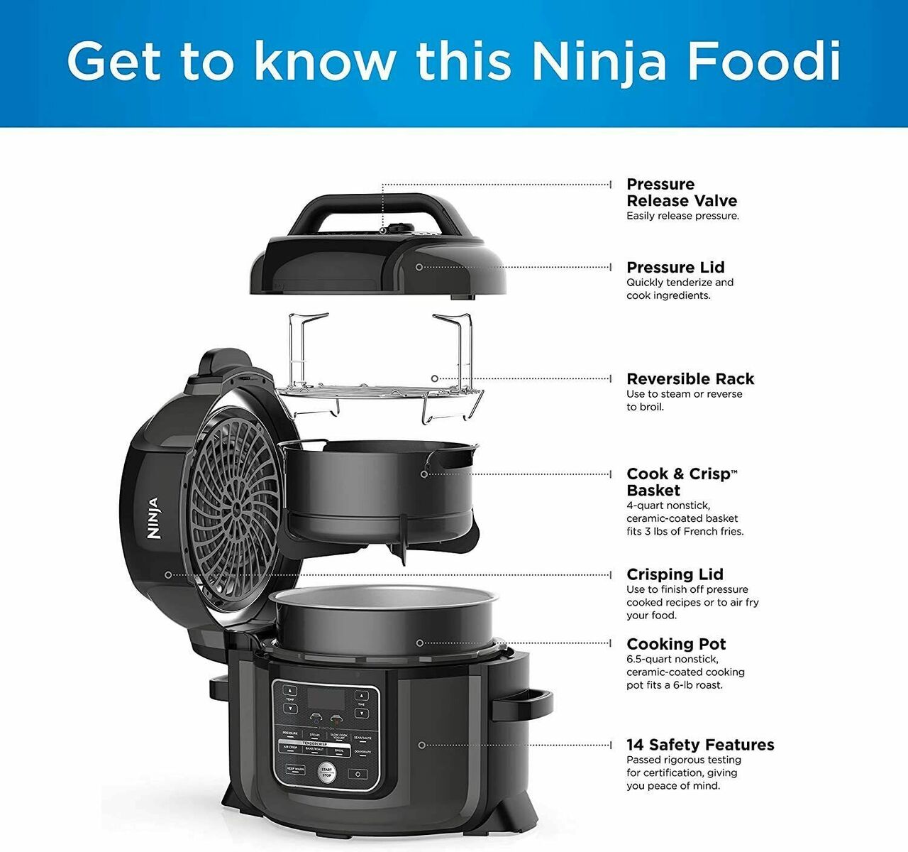 Ninja Foodi 6.5 Quart 9-in-1 Pressure Cooker and Air Fryer, OP350CO, Factory Refurbished