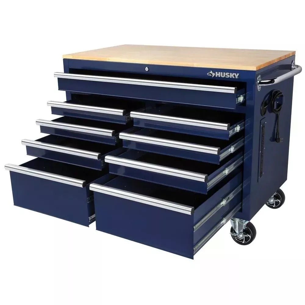 Husky 46 in. W x 24 in. D 9-Drawer Gloss Blue Deep Tool Chest Mobile Workbench