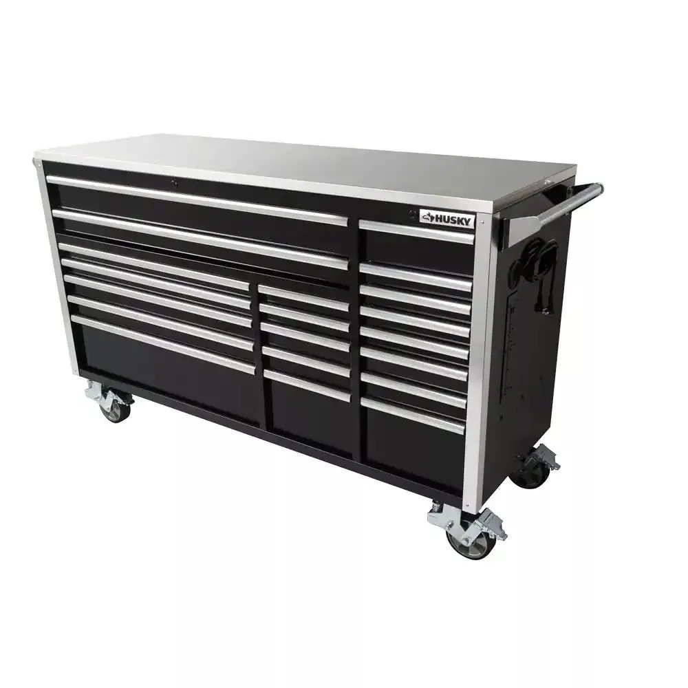 Husky 72 in. W x 24.6 in. D Professional Duty 20-Drawer Mobile Workbench Cabinet with Stainless Steel Top in Black