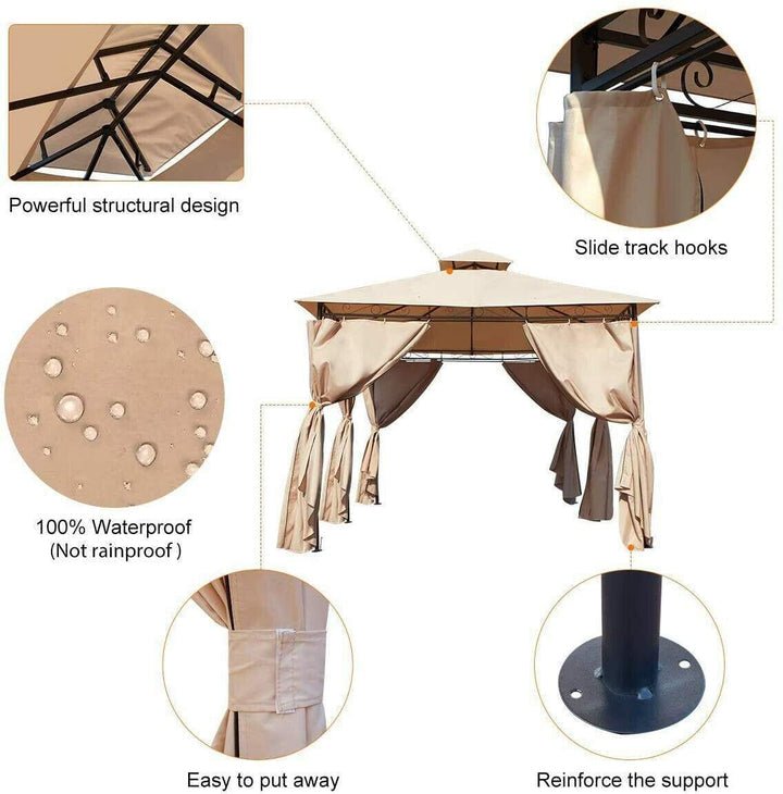 10' x 13' Outdoor Patio Gazebo 2-Tier Metal Roof Pavilion Canopy Tent