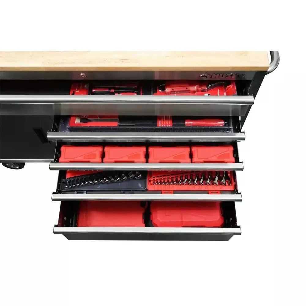 Husky 52 in. W 5-Drawer 1-Door, Deep Tool Chest Mobile Workbench in Stainless Steel with Hardwood Top