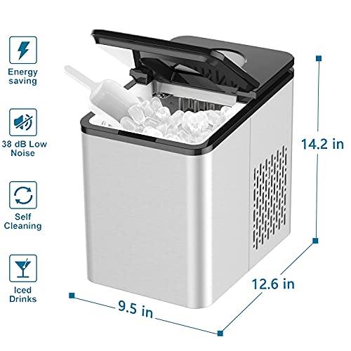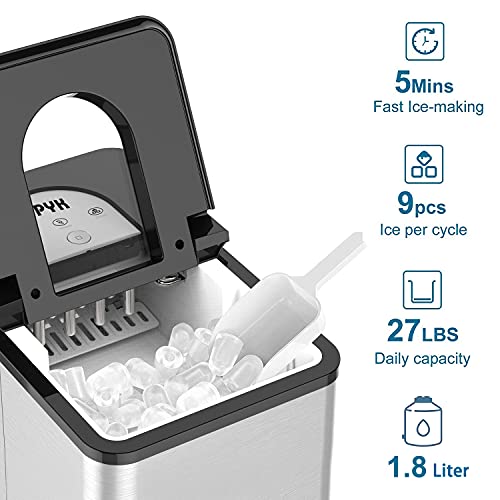 SOOPYK Ice Makers Countertop | Portable Ice Maker Cube | 27 lbs in 24 hrs | 9 Ice Cubes Per 5-8 Mins | Ice Maker Machine Self Cleaning Function | Ice Scoop and Basket,Stainless Steel