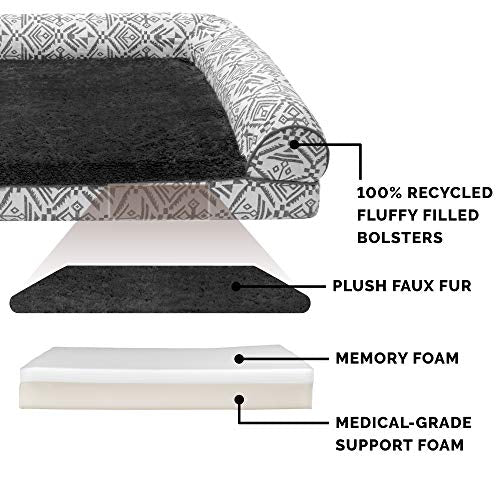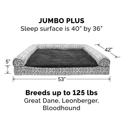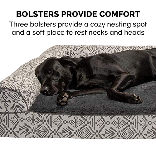Furhaven Pet Bed for Dogs and Cats - Plush and Southwest Kilim Decor Sofa-Style Memory Foam Dog Bed, Removable Machine Washable Cover - Boulder Gray, Jumbo Plus (XX-Large)