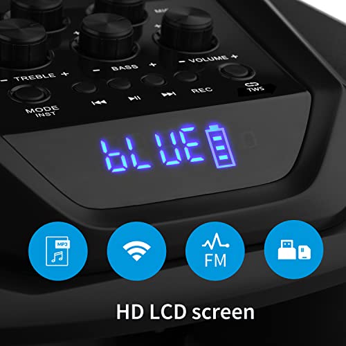 Moukey Karaoke Machine Speaker, Bluetooth Outdoor Portable Wireless Speaker PA System with 10" Subwoofer, Microphone, DJ Lights, Rechargeable Battery, Recording, MP3/USB/TF/FM (RMS 140W to 520W Peak)