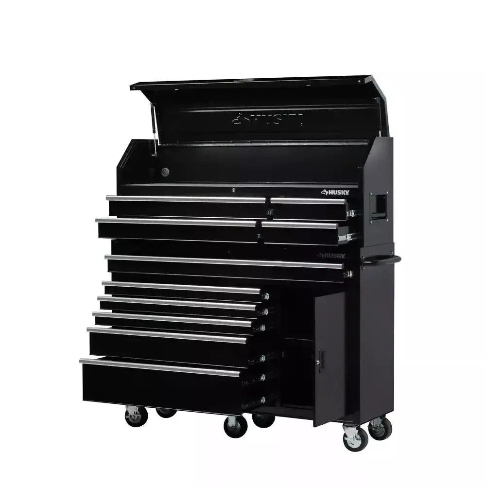 Husky 61 in. W 10-Drawer 1-Door Combination Tool Chest and Rolling Cabinet Set in Gloss Black