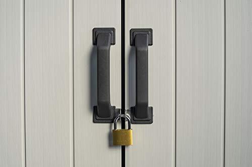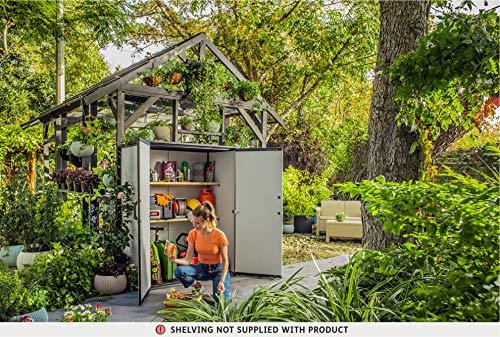 Keter Premier Tall Resin Outdoor Storage Shed with Shelving Brackets for Patio Furniture, Pool Accessories, and Bikes, Grey & Black