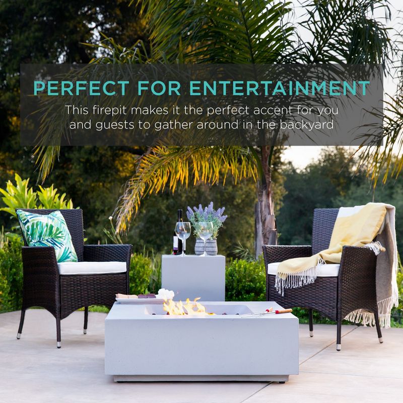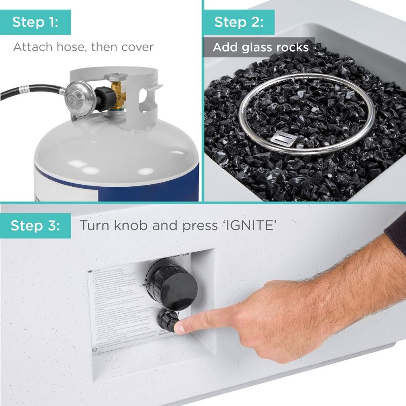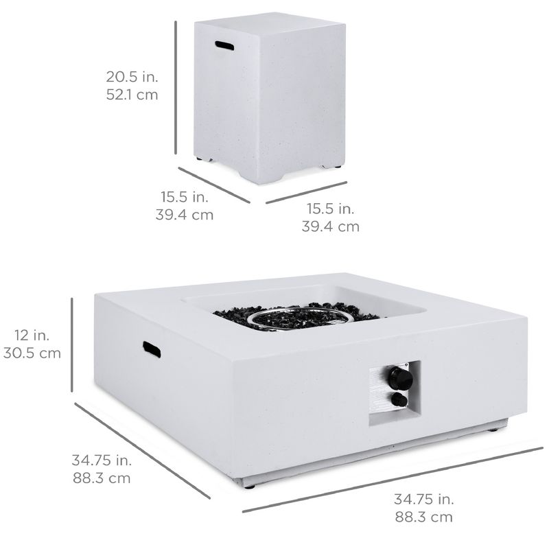 Best Choice Products 35x35in 40,000 BTU Outdoor Square Propane Fire Pit Table w/ Side Table Tank Storage, Cover
