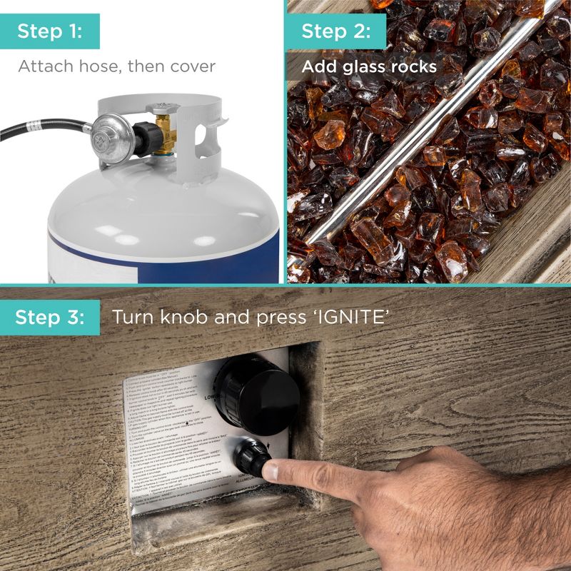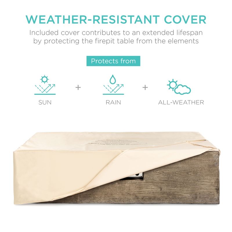Best Choice Products 48x27in 50,000 BTU Patio Propane Fire Pit Table, Side Table Tank Storage w/ Wood Finish, Pit Cover