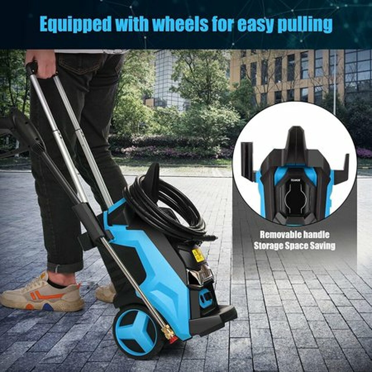 Electric pressure washer 3800PIS 2000W Intelligent powerful pressure washer with touch screen 3 positions, self-assembly, used for courtyard, garden and car cleaning (blue)