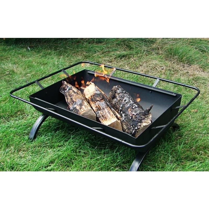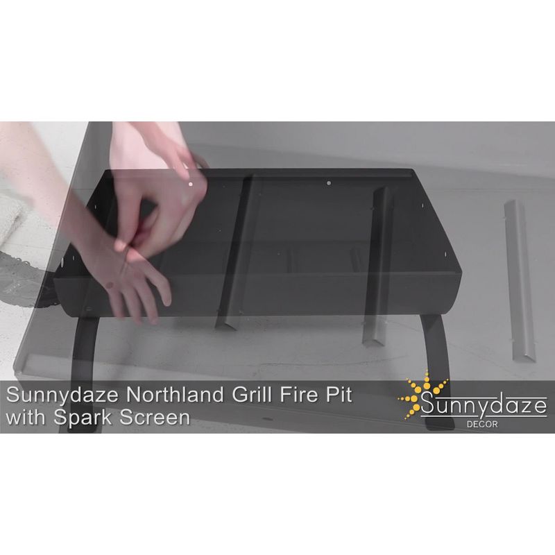 Sunnydaze Outdoor Camping or Backyard Rectangular Northland Fire Pit with Cooking Grill Grate, Spark Screen, Log Poker, and Fire Pit Cover – 36″