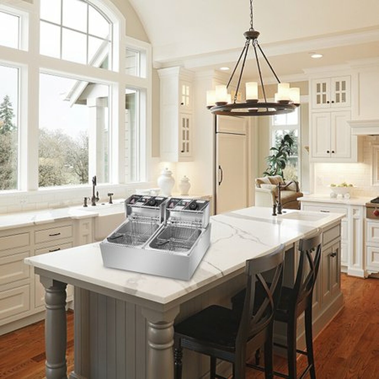ZOKOP 12L 5000W Electric Countertop Deep Fryer With Basket Stainless Steel Double Tank Electric Fryer For Home and Commercial Use