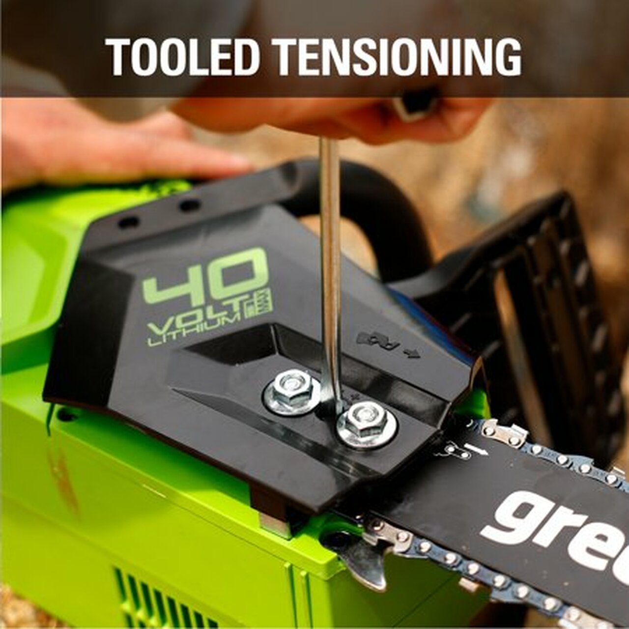Greenworks 40V 14 in. Cordless Chainsaw with 2.5Ah Battery and Charger, 2012802