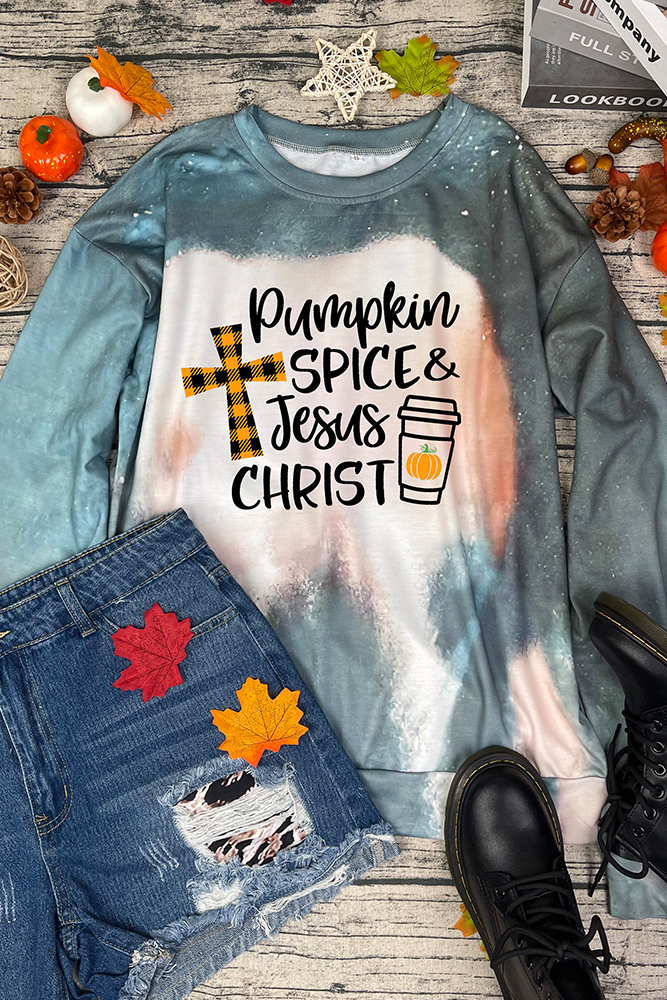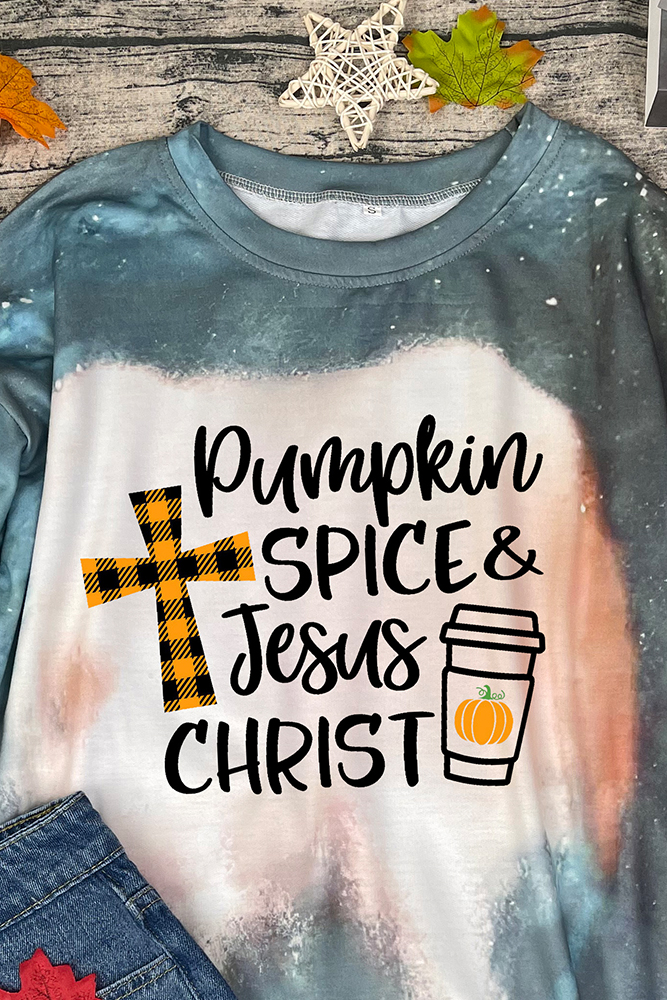 Halloween Print Bleached Tie Dye O-neck Sweatshirt Women UNISHE Wholesale
