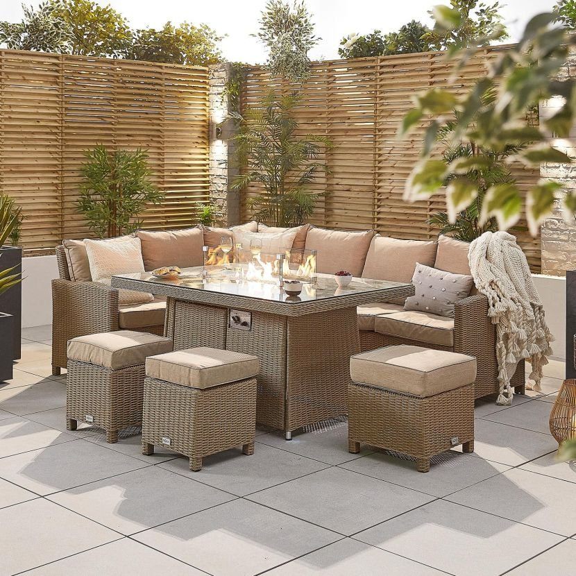 Cambridge Left Hand Casual Dining Corner Sofa Set with Firepit Table