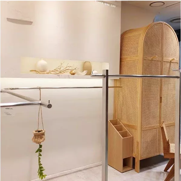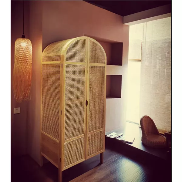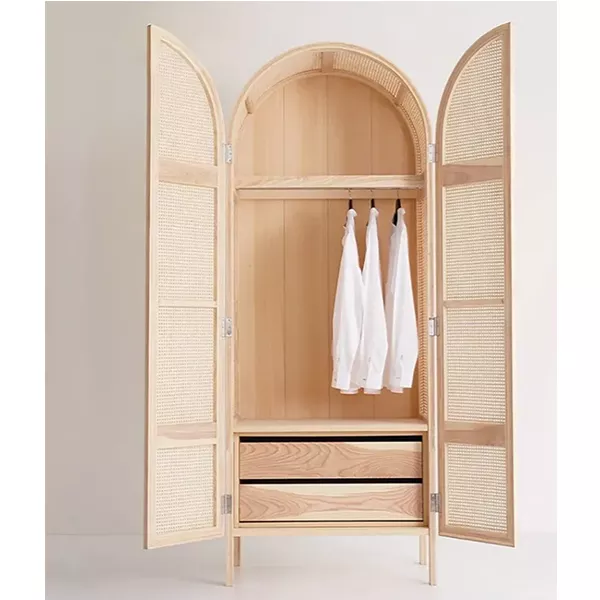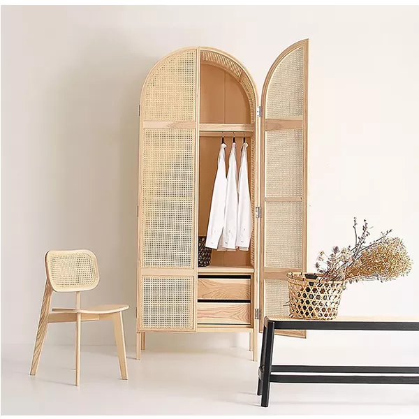 COTTAGE 2-DOOR CANE CLOSET WITH HIDDEN DRAWERS NATURAL WOVEN RATTAN CABINET ASH