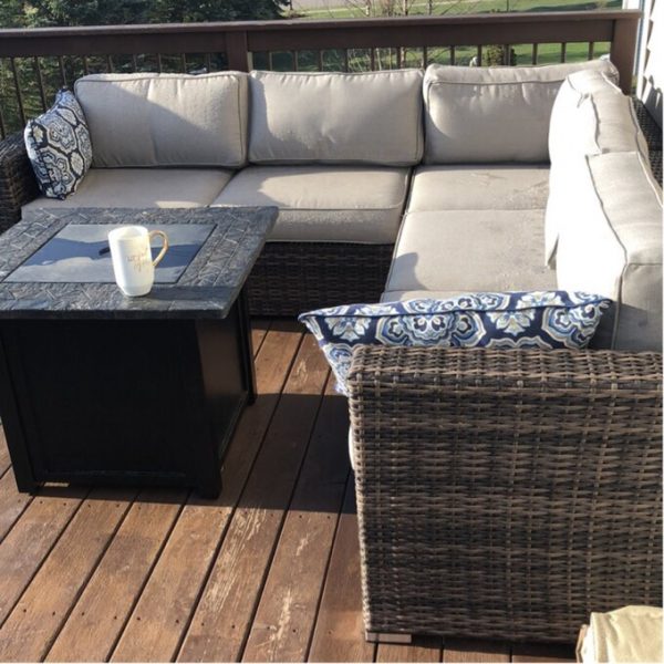 94” Wide Outdoor Wicker Patio Sectional with Cushions